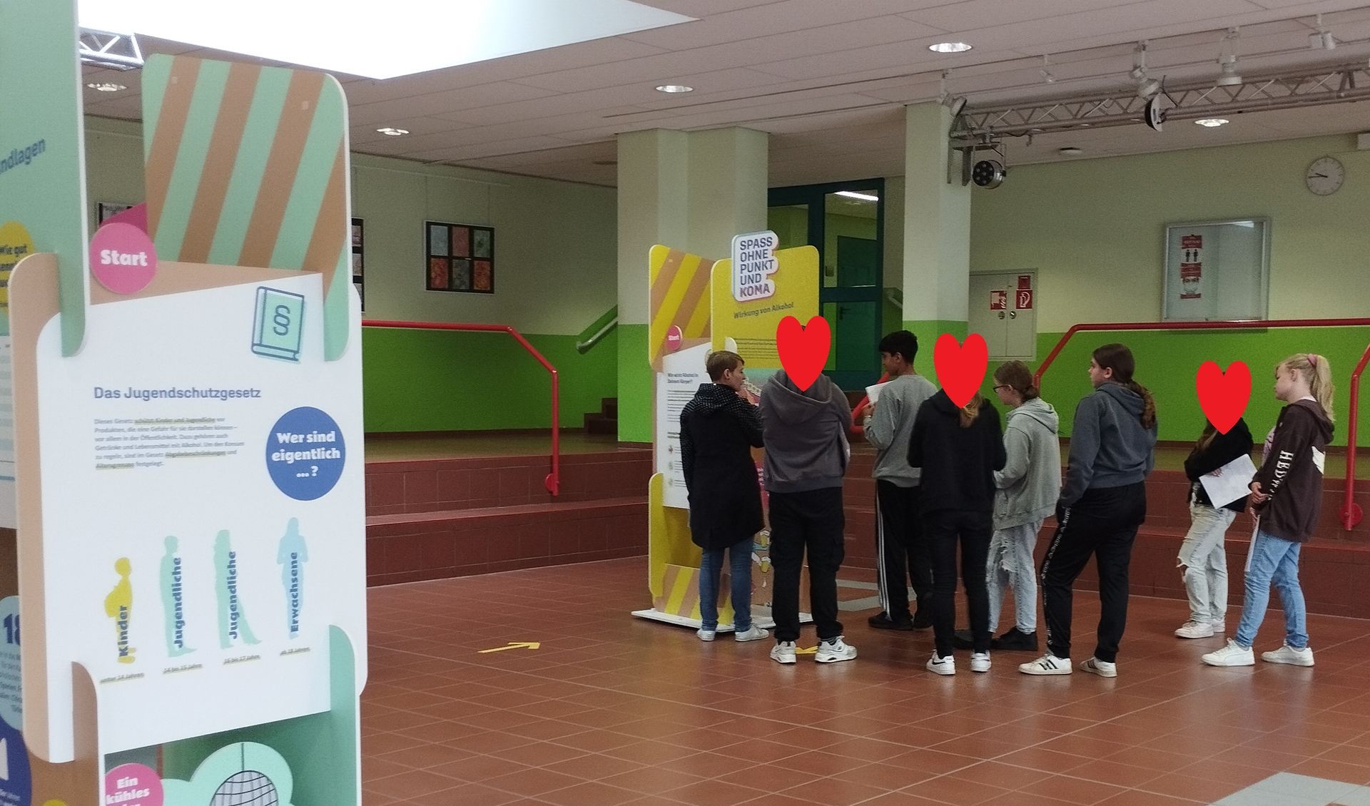 Am Donnerstag, den 04.07.2024 besuchten wir, die Klasse L7 zusammen mit unserer Klassenlehrerin Frau Heuchling-Wagner und unserer Jugendsozialarbeiterin Frau Lang eine Ausstellung zur Alkoholprävention in der Realschule in Bad Staffelstein.