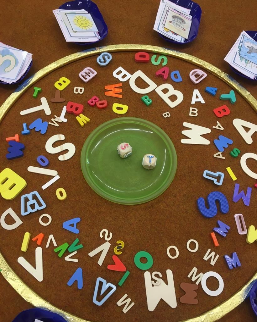 Bei einem Zuordnungsmemory sollte jedes Kind den richtigen Buchstaben auf eine Bildkarte legen. Schwieriger wurde das Ganze noch mit dem Buchstabenwürfel.