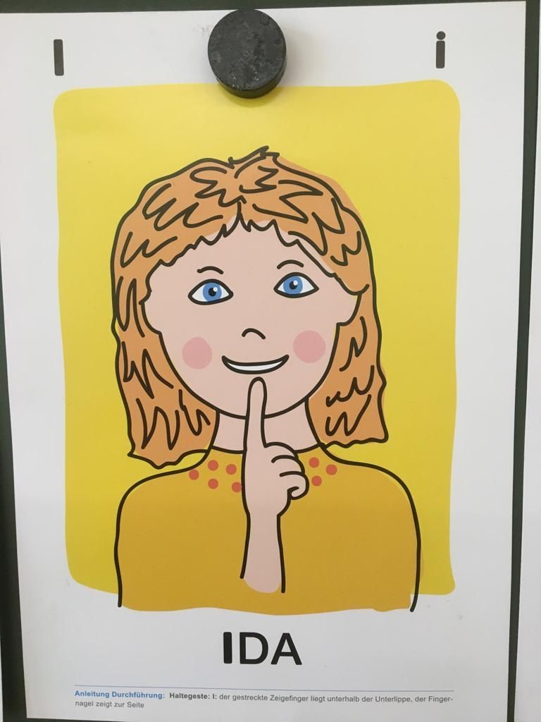 In der SVE werden nur einzelne Buchstabenlaute erarbeitet und mit dem dazugehörigen Bild verknüpft, z.B. Ball fängt mit Bb an. Im Spiegel schauen die Kinder ihren Mund an und jeder übt sozusagen automatisch die richtige Ausspracheform. Eine vorgegebene Handbewegung wird damit verknüpft und geübt. Diese Art von Training ist immer themenbezogen, z.B. das O zu Ostern, T für Tulpe, M im März, S für Sommer, A zu einer Ameisengeschichte…