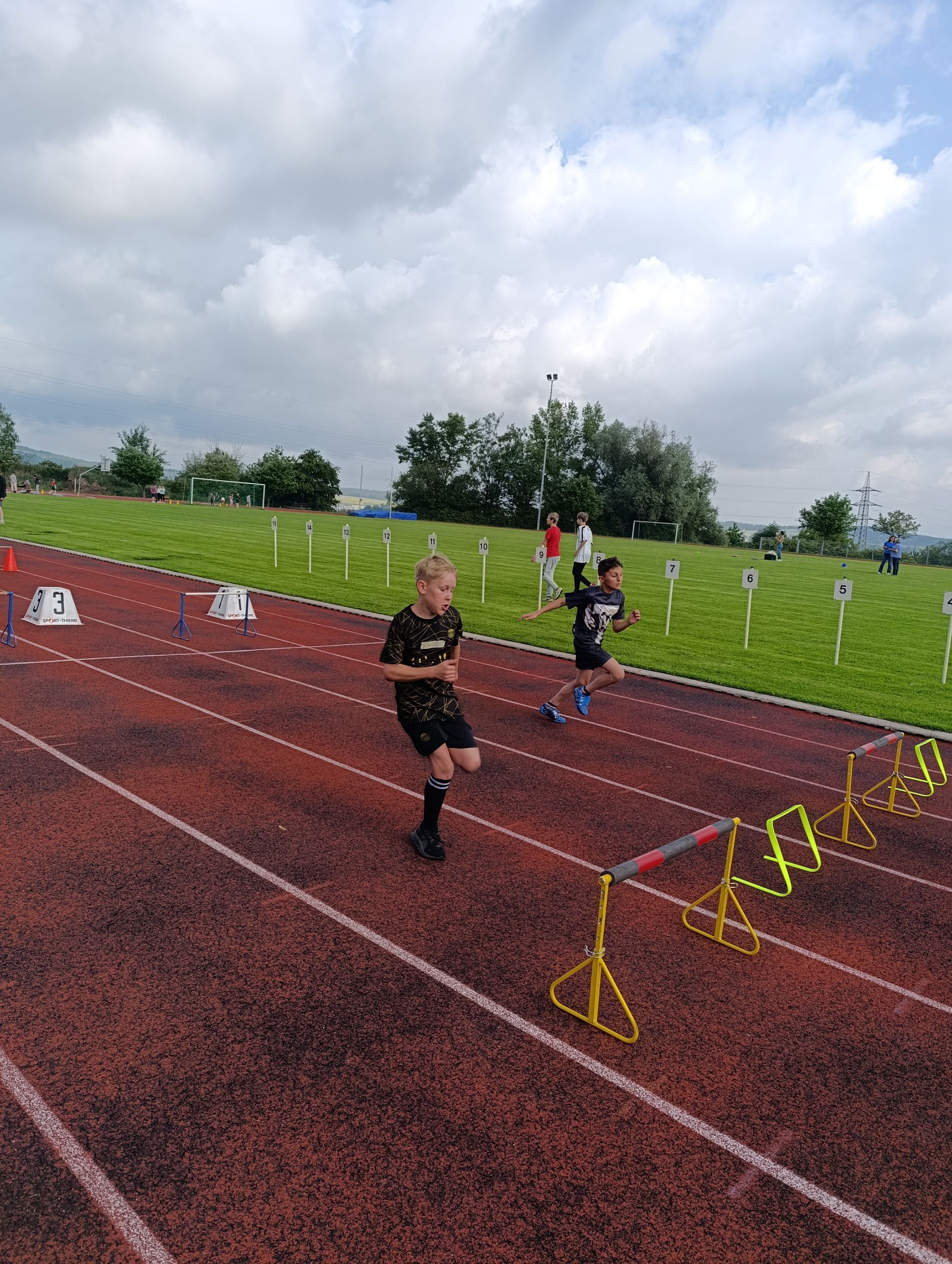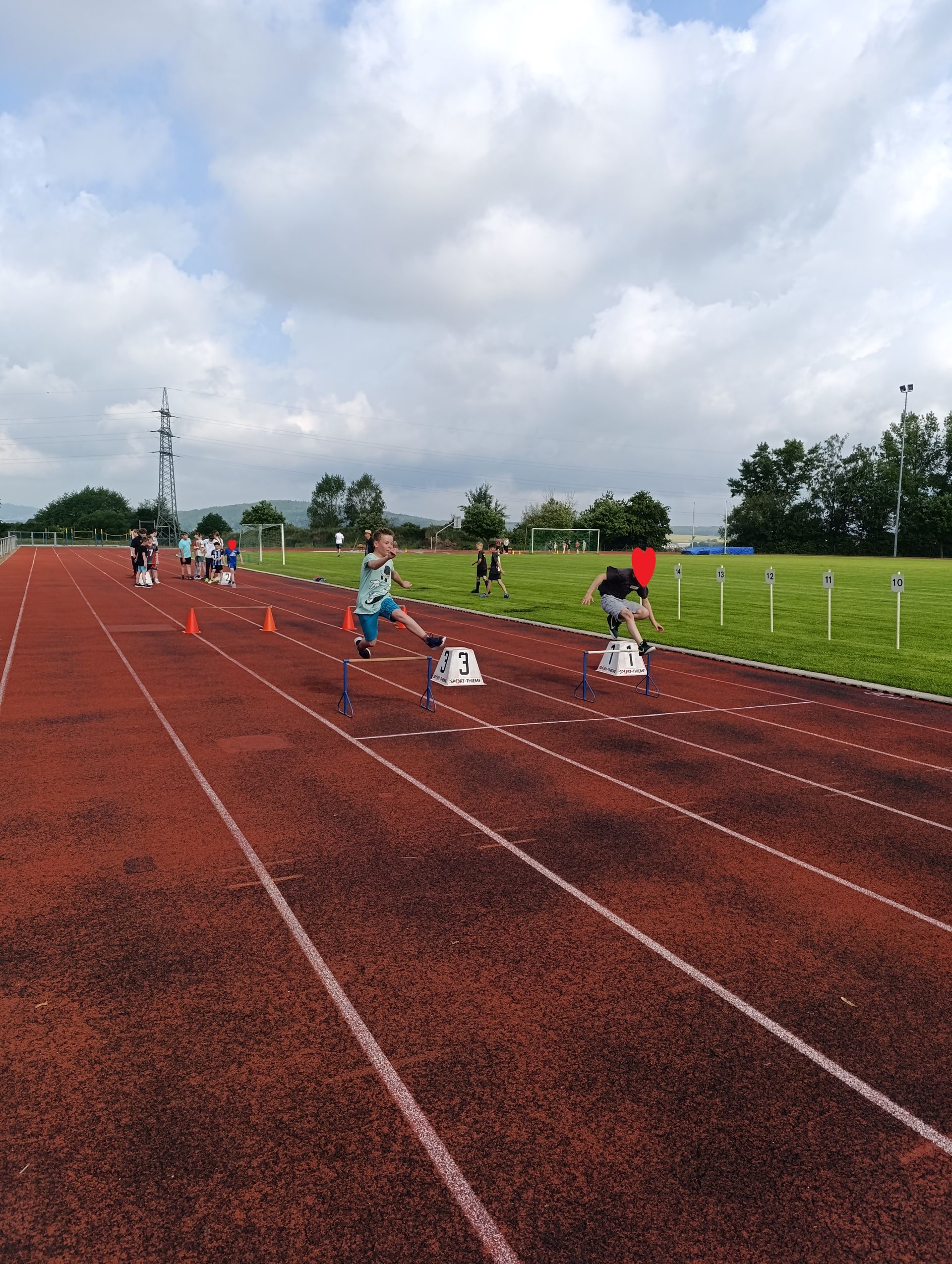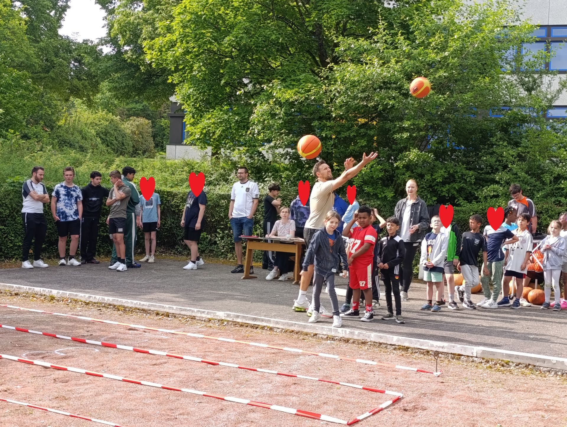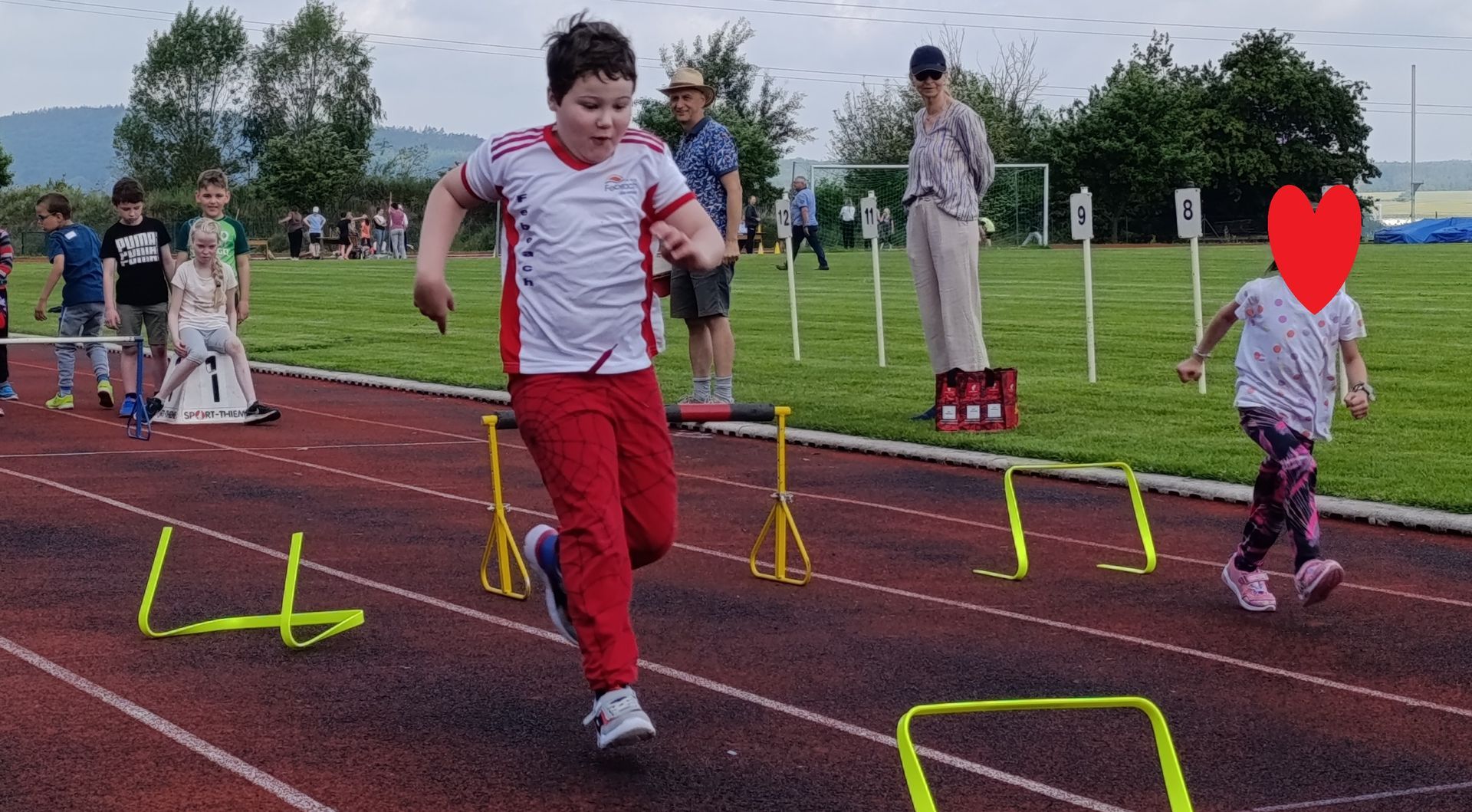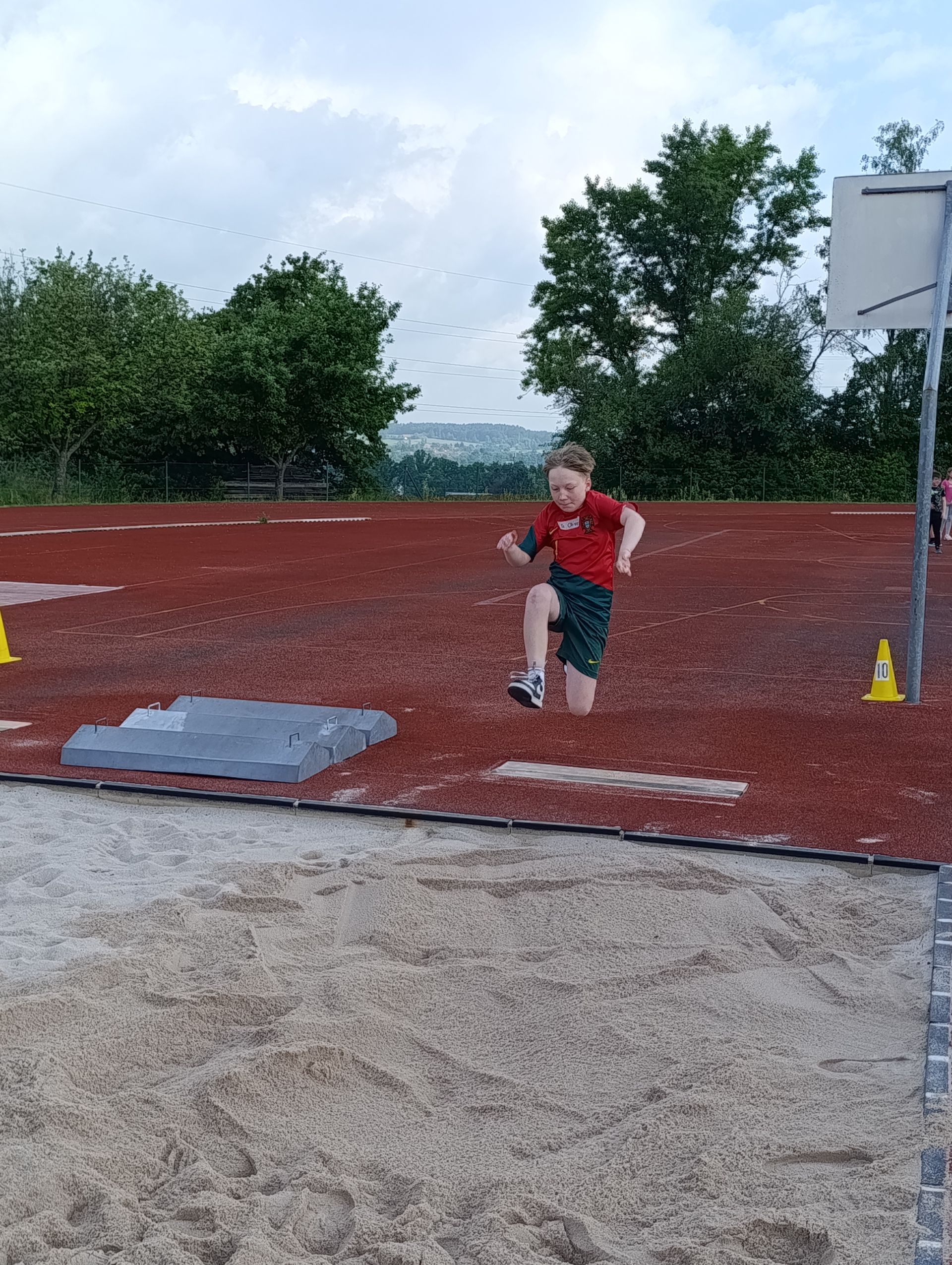 Die Schülerinnen und Schüler waren in verschiedene Riegen eingeteilt und konnten an zahlreichen Stationen ihr Können unter Beweis stellen: Beim Hürdenlauf, Weitsprung, Kugelstoßen und Transportlauf zeigten sie Ausdauer, Schnelligkeit und Geschicklichkeit. Auch die Station „Spielekiste“ bot Gelegenheit zum Austoben und Spaß haben.