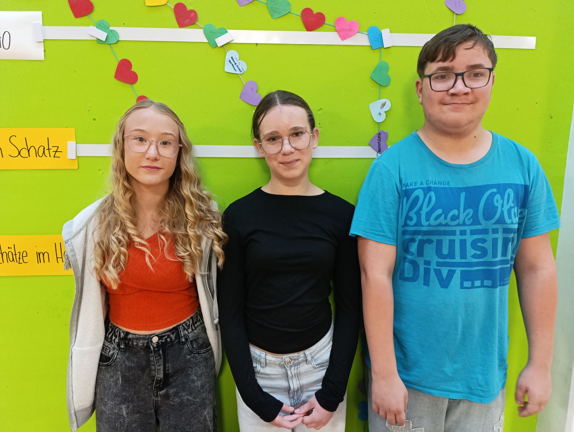 Nachdem Frau Puff und Frau Schumann die Stimmen ausgezählt hatten, standen die drei Neuen endlich fest – unsere 1. Schülersprecherin Franziska, unser 2. Schülersprecher Janick und unsere 3. Schülersprecherin Zoé-Ann, die die Wahl stolz und glücklich annahmen. Herzlichen Glückwunsch euch dreien!