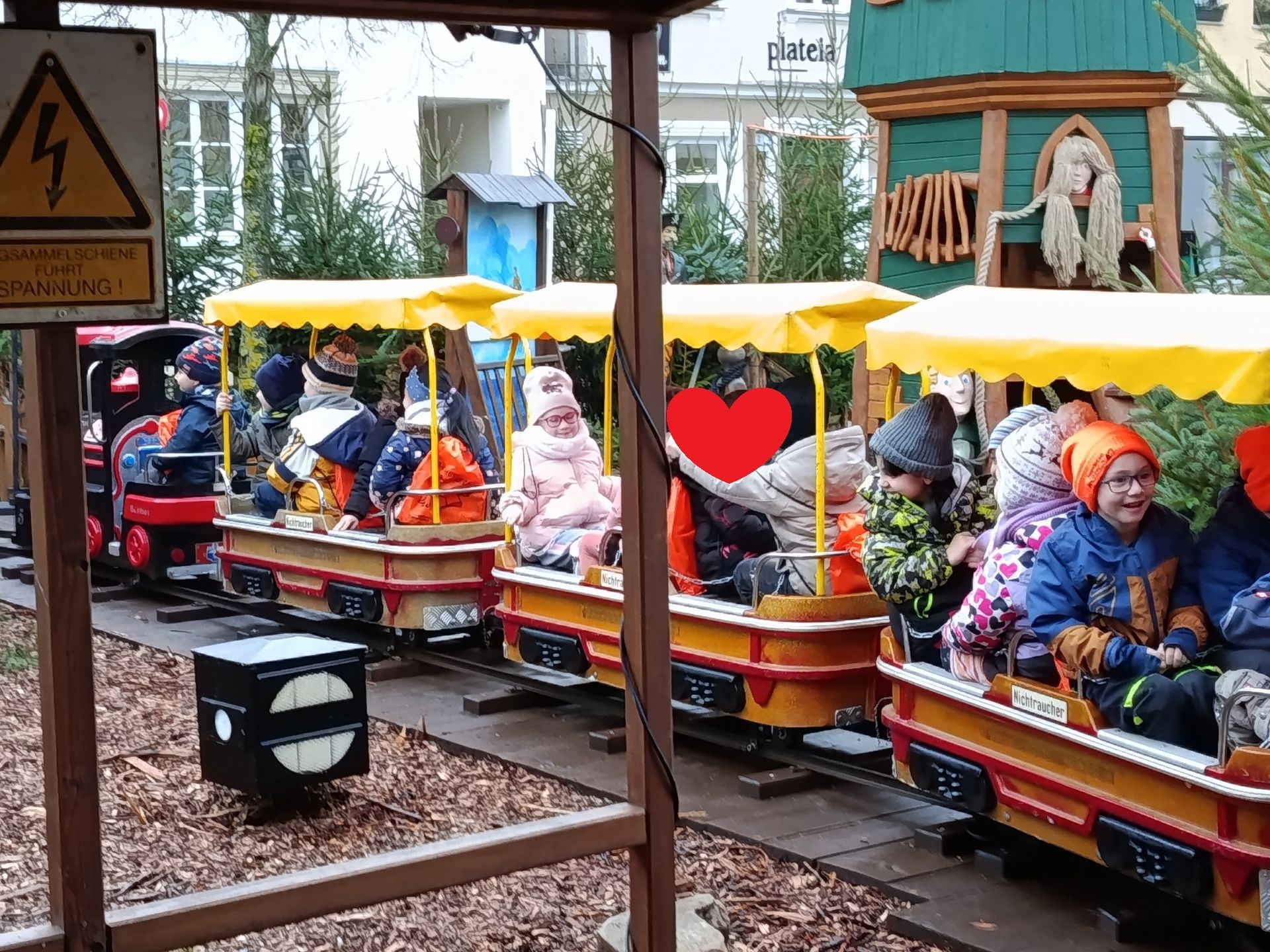 Am 9.12. gab es nach dem Büchereibesuch noch ein weiteres Highlight. Wir durften auf dem Lichtenfelser Weihnachtsmarkt mit der Eisenbahn fahren.