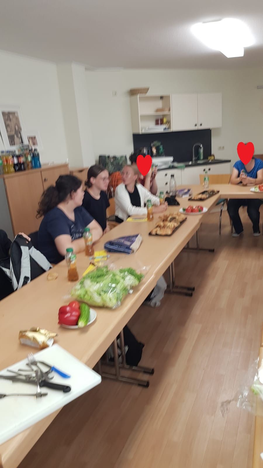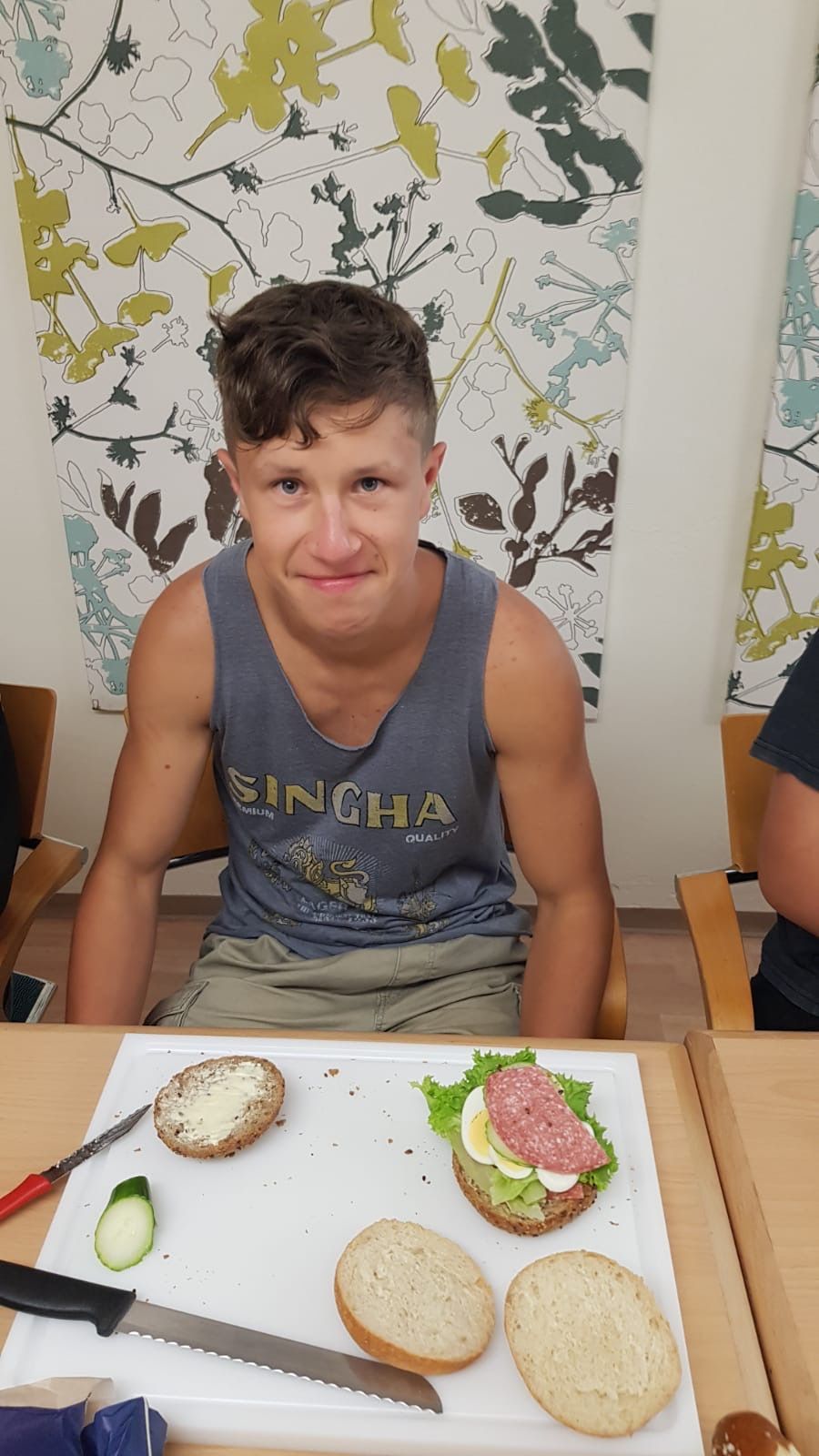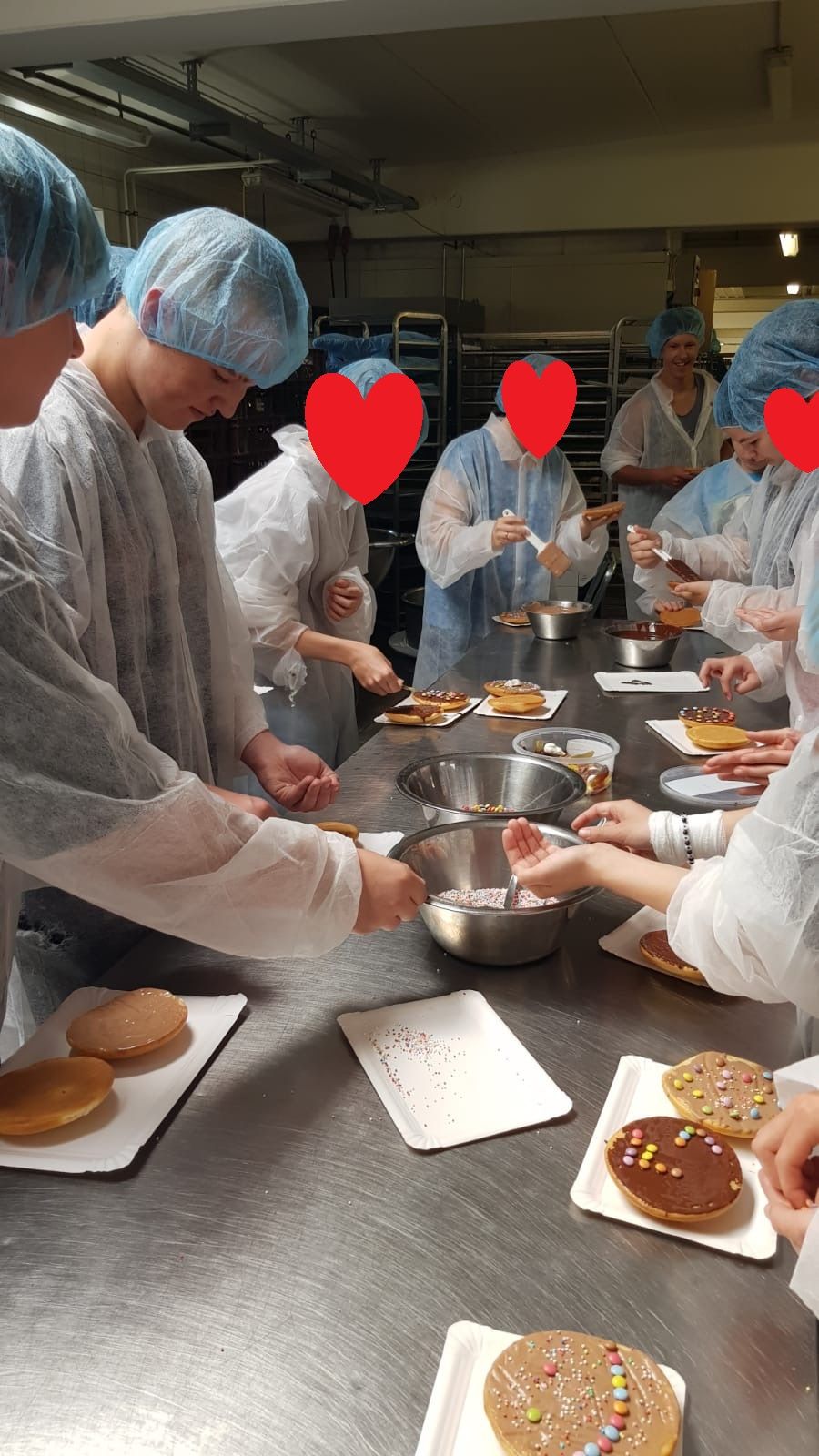 Frau Schmidt von der Bäckerei Fuchs führte die Gruppe durch die verschiedenen Räumlichkeiten und erklärte anschaulich die Funktionen der unterschiedlichen Geräte. Anschließend durften die Schülerinnen und Schüler im Aufenthaltsraum kreativ werden: Sie lernten, wie man Brötchen und Laugenstangen mit Salat, Käse, Wurst, Gurken, Tomaten, Paprika und Eiern schön belegt. Außerdem zeigte Frau Schmidt, wie Amerikaner dekoriert werden. Die Jugendlichen durften nun selbst Brötchen oder Laugenstangen belegen, Amerikaner verzieren, diese essen oder mit nach Hause nehmen.