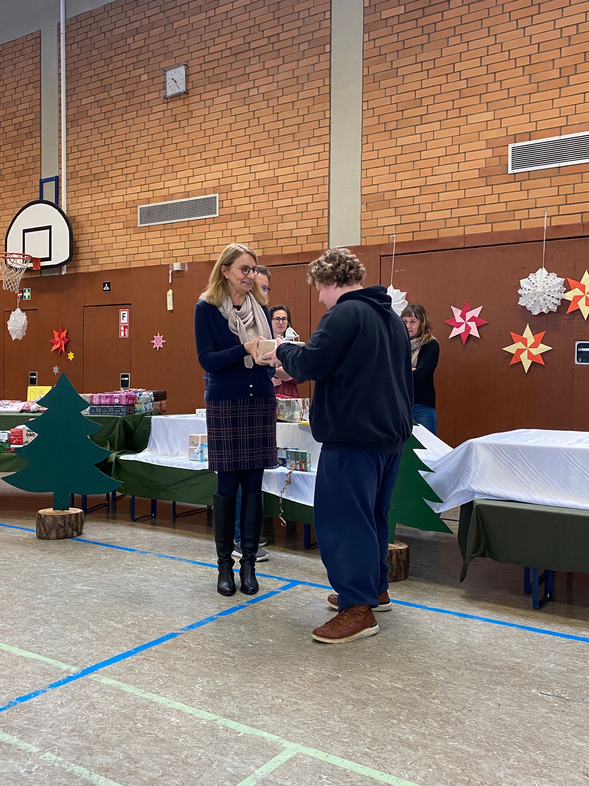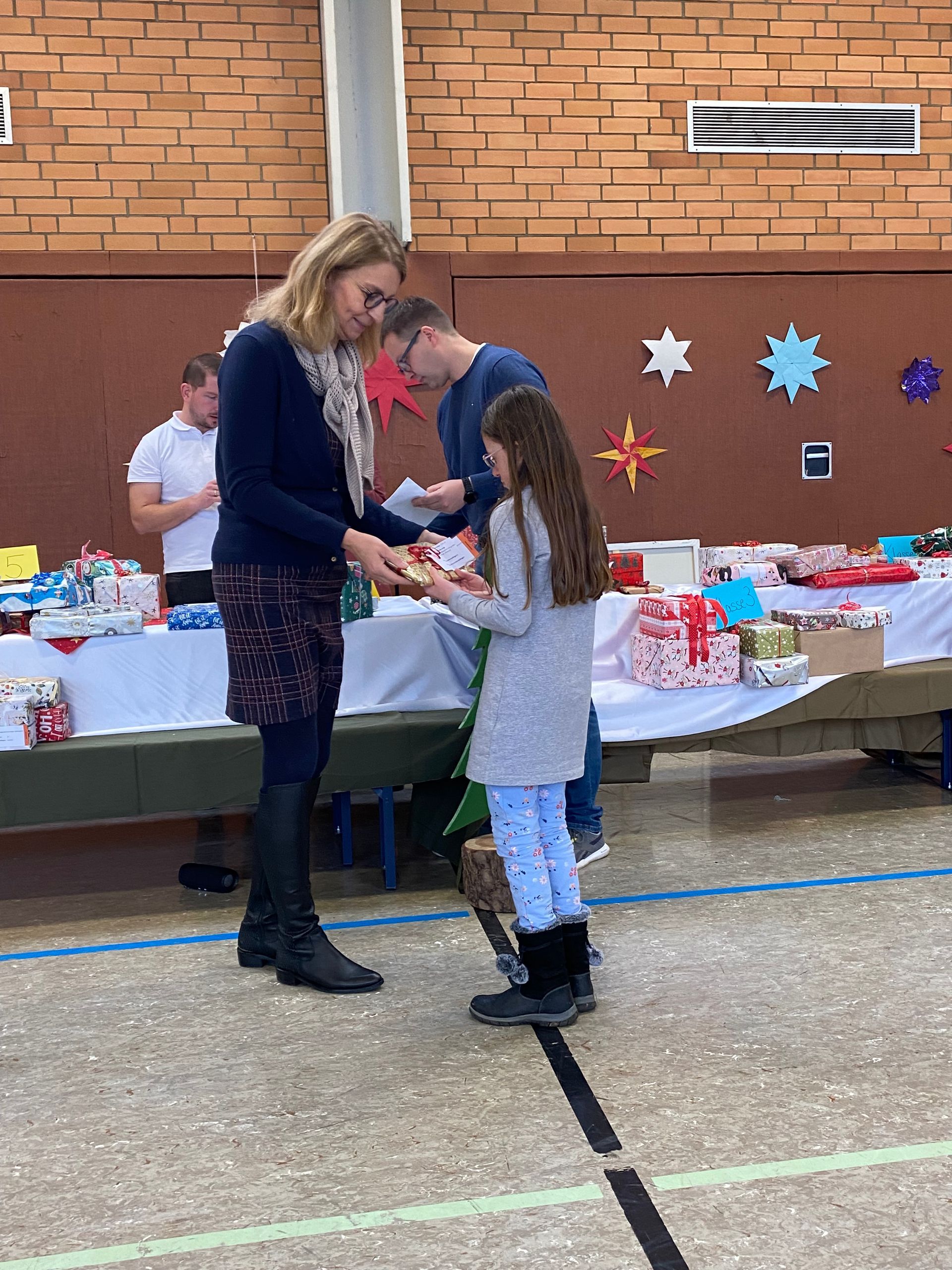 Schüler*innen der 1. bis zur 6. Klasse erhielten liebevoll verpackte und individuelle Weihnachtsgeschenke. Zuvor durften sich die Schüler*innen Wünsche im Wert von 20 Euro überlegen oder mit Hilfe der Lehrerin/des Lehrers aussuchen.