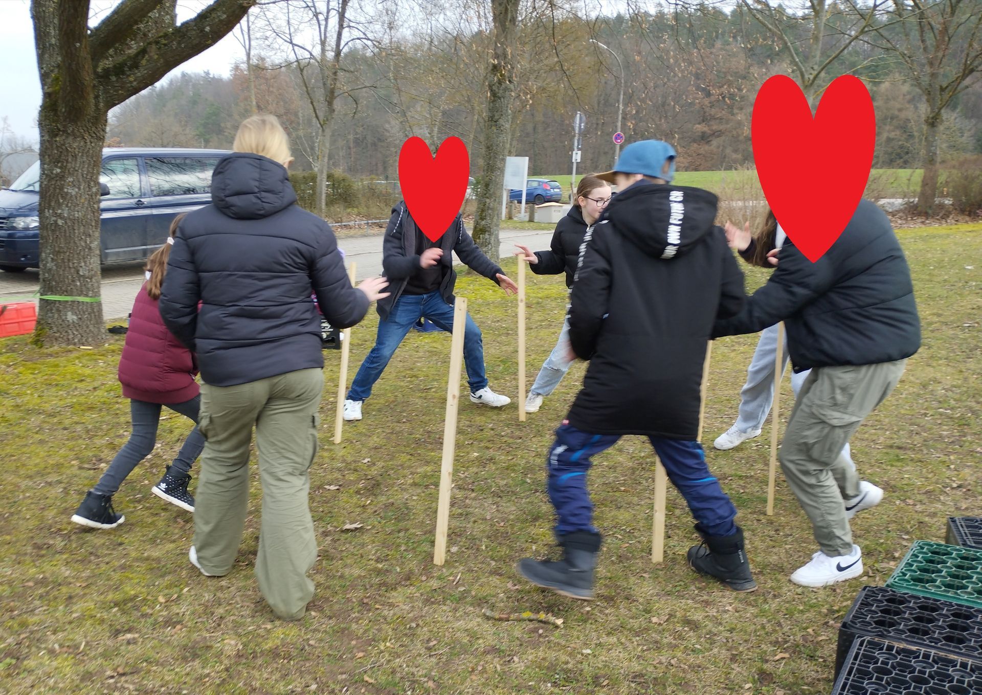 Beim Stabspiel stellten wir uns im Kreis auf. Jeder stellte einen Stab vor sich und bei einem Kommando von uns mussten wir eins weiterziehen, ohne den Stab mitzunehmen. Es sollte dabei kein Stab umfallen. Eine Runde war das Ziel.