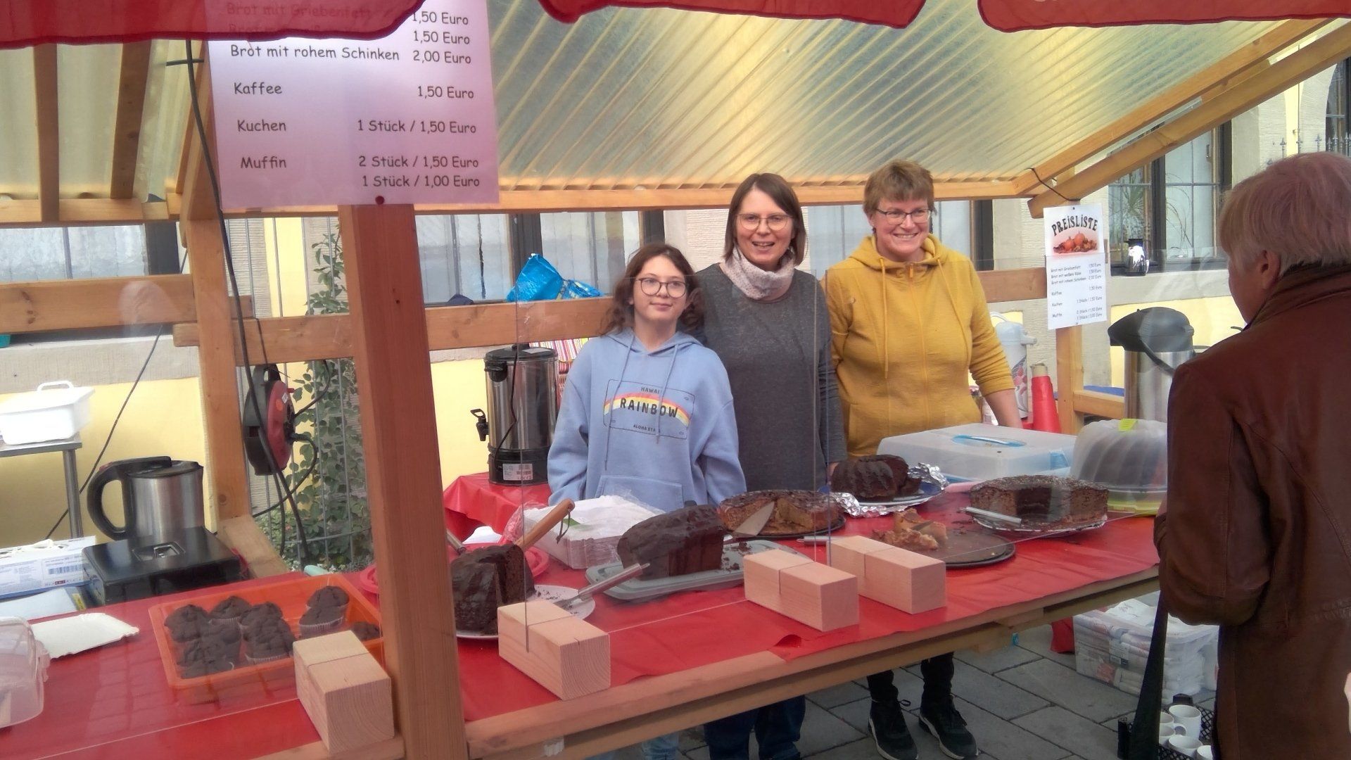 Am Tag des Herbstmarktes trafen sich bereits um 9 Uhr fleißige Eltern aus dem Elternbeirat und einige Schüler*innen, bauten die Stände auf und richteten alles her. Um 10.30 Uhr ging es dann los. Bei schönstem Herbstwetter waren viele Leute unterwegs und kauften fleißig bei uns ein.