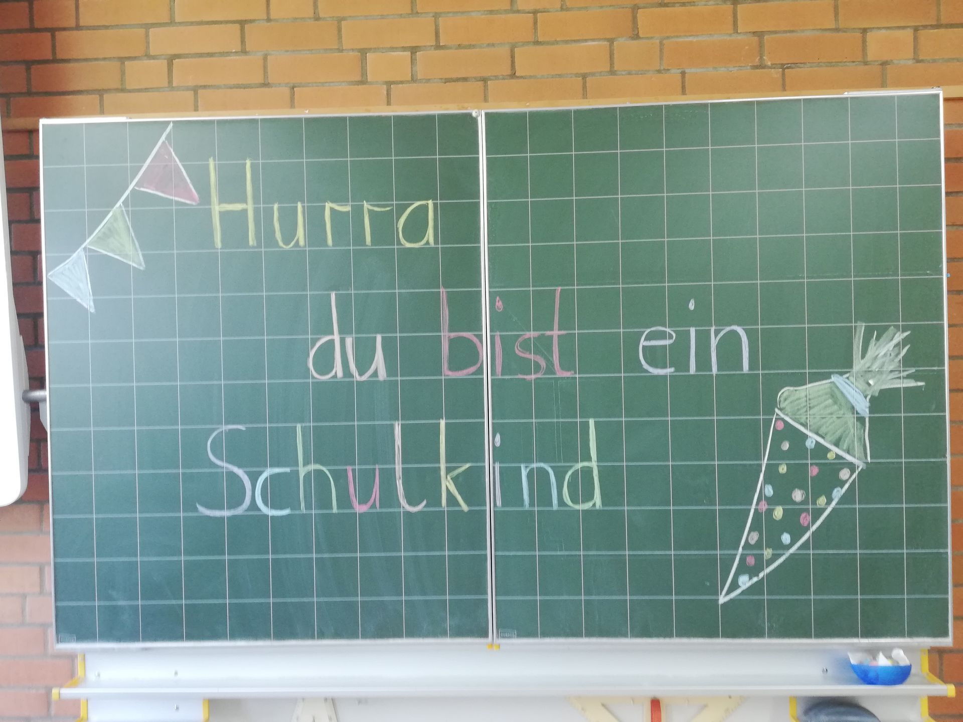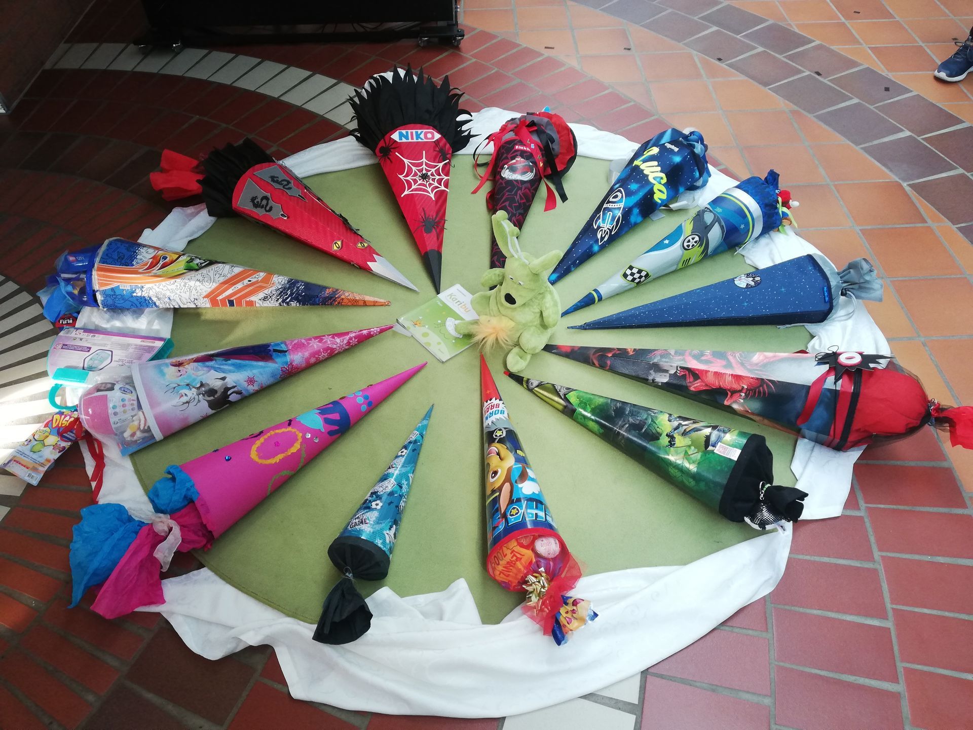 Alle Erstklässler mit ihren Eltern und Verwandten trafen sich hierzu in der geschmückten Aula. Kinder aus den Klassen D1A und D1B sorgten im Anschluss für gute Stimmung mit einem Willkommenslied für die neuen Erstklässler und überreichten jeder neuen Schülerin und jedem neuen Schüler eine prall gefüllte Schultüte. Anschließend durften die aufgeregten Erstklässler ihre erste Unterrichtsstunde in ihrem Klassenzimmer mit ihrer Klassenlehrerin Katharina Wurm verbringen.