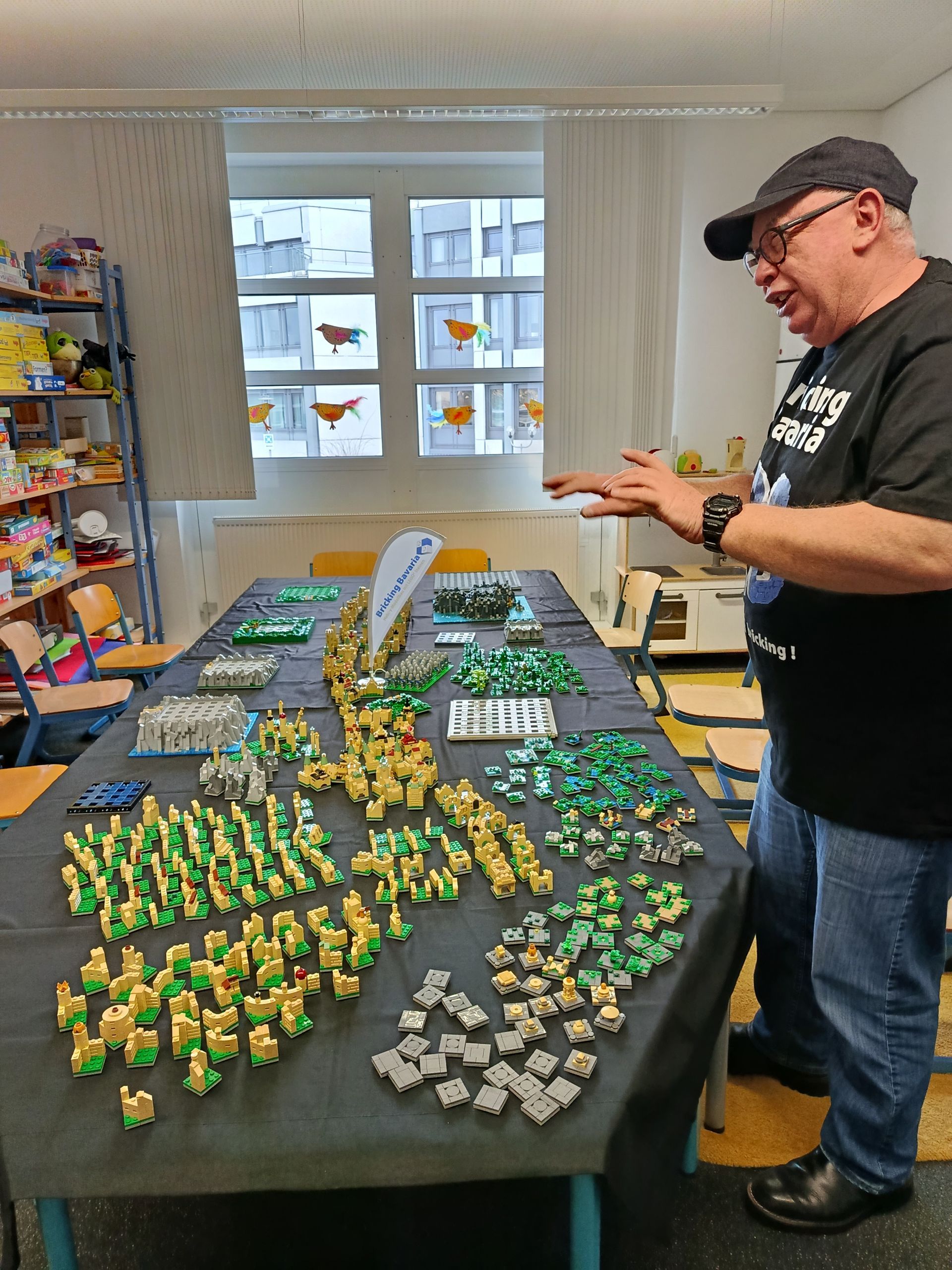 Thomas ist Mitglied bei Bricks Bavaria, deren Sitz in München ist. Er brachte unzählige Legosteine, Decken und Geschenke mit. In regelmäßigen Abständen durften unsere Kinder der SVE mit diesen zum Thema „Burgen“ bauen. Das Leuchten der Kinderaugen war ständig zu sehen. Thomas erklärte alles mit Begeisterung, ganz viel Ruhe und sachkundigem Wissen. So ließ er auch Platz für die kreativen Ideen der Kinder. Dies tat er, ganz selbstverständlich für ihn, als Ehrenamt. Es entstanden Wassergräben, Gärten, Burgen mit Brücken und noch vieles mehr. Thomas begleitete uns einen ganzen Monat und vermittelte sein Wissen hierbei immer in Kleingruppen. Die Kinder waren so begeistert, dass das Thema Ritter auch im Gruppenalltag weitergeführt wurde: Es wurden Ritterschilder gestaltet und ausgestellt und die Bücherei stellte uns eine ganze Kiste zum Thema des Projektes zusammen. Hier auch vielen Dank für die erneute Zusammenarbeit. Ein weiterer großer Dank auf diesem Weg möchten wir nochmal Thomas sagen für die so liebevolle Zusammenarbeit. Die Freude bei den Kindern lässt sich schwer beschreiben und wir als SVE-Team hoffen, dass die Bilder mehr sagen als es Worte tun können.