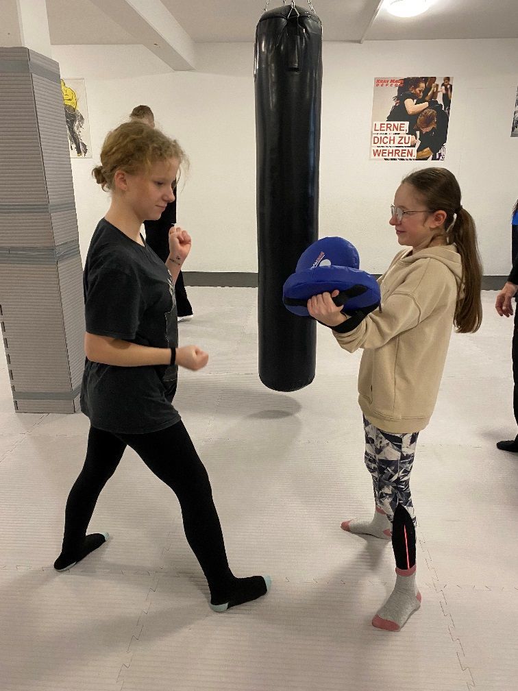 Nachdem der Trainer uns begrüßt hat, haben wir ein Video angesehen, wo es um das richtige Verhalten in Konflikten mit Gewalt geht. Uns wurden Übungen gezeigt, die wir anschließend selbst ausprobieren durften. Zum Beispiel sollten wir uns aus einen Schwitzkasten befreien. Das hat Spaß gemacht. Noch dazu war es interessant und hilfreich.
