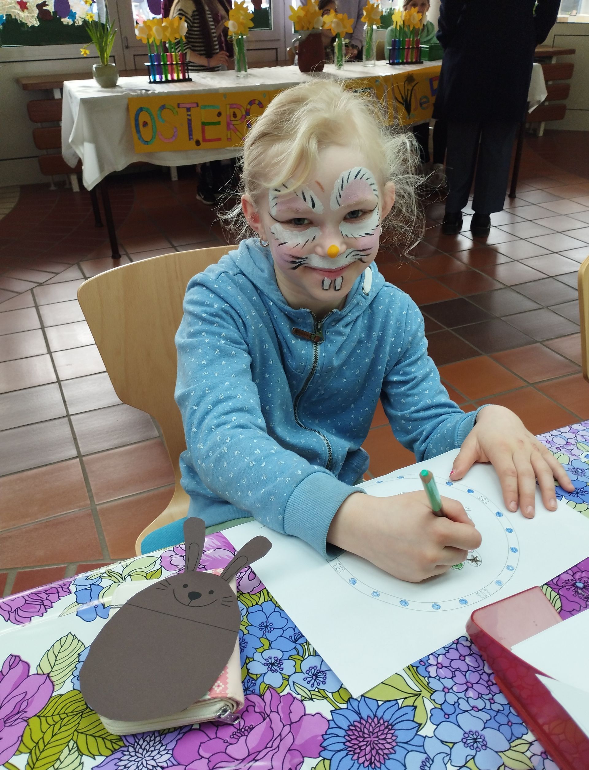 Heiter ging es an der St. Katharina-Schule mit Dosenwerfen und Eierlaufen her. Auch Ostereier bemalen, Osterkarten basteln und Ostermandalas ausmalen wurden dort angeboten. An den Osterverkaufsständen konnte man Schlüsselanhänger, Osterkarten, Hasenanhänger, bepflanzte Kräutertöpfe, Osterglocken aus Papier, Kerzen, Seifen und Brotkörbchen aus Pappmaschee kaufen. Schülerinnen und Schüler aus den verschiedensten Klassen waren seit Wochen fleißig und stellten dies alles selbst her. Kam zwischendurch Hunger auf, so konnte man sich leckere Bratwürste, Frühlingsbrote, Waffeln, Laugenhasen und Cocktails schmecken lassen. Der Elternbeirat der St. Katharina-Schule verwöhnte die Besucher noch mit selbstgebackenen Kuchen und Kaffee. Für Stimmung sorgte der Auftritt des gemeinsamen Chors beider Schulen.