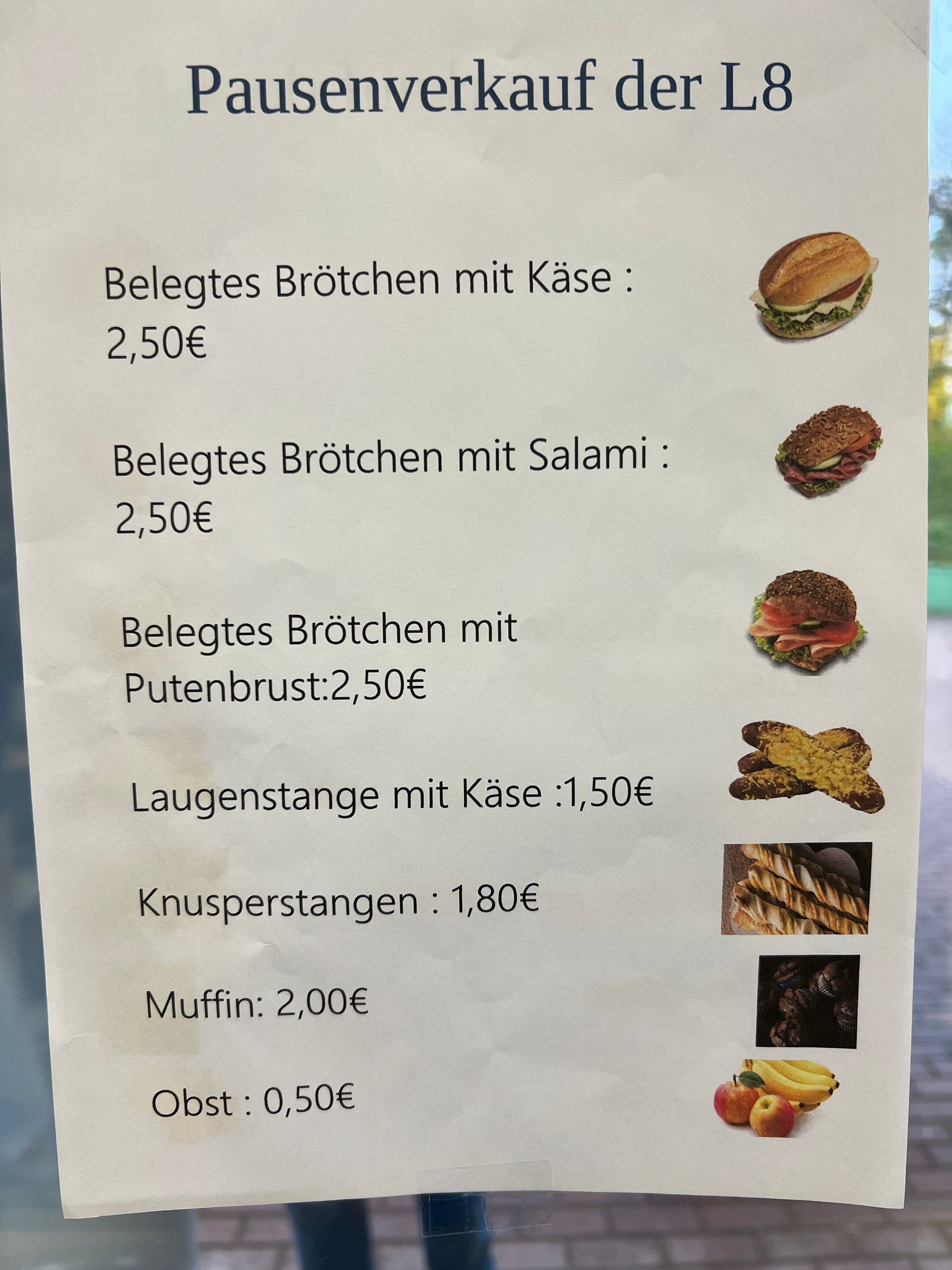 Die Klasse L8 bietet somit ein wechselndes Angebot an Pausenverpflegung zu erschwinglichen Preisen an.