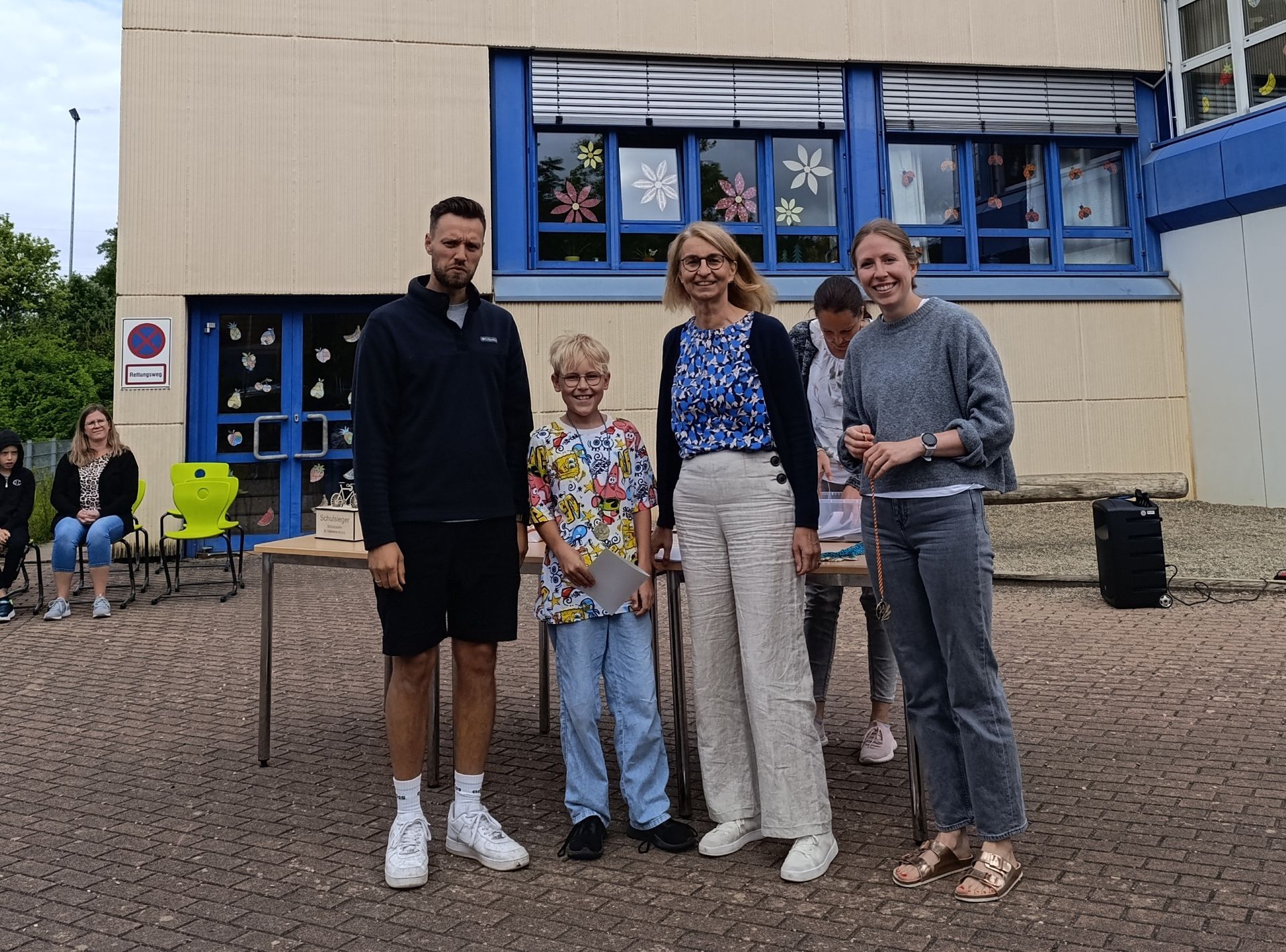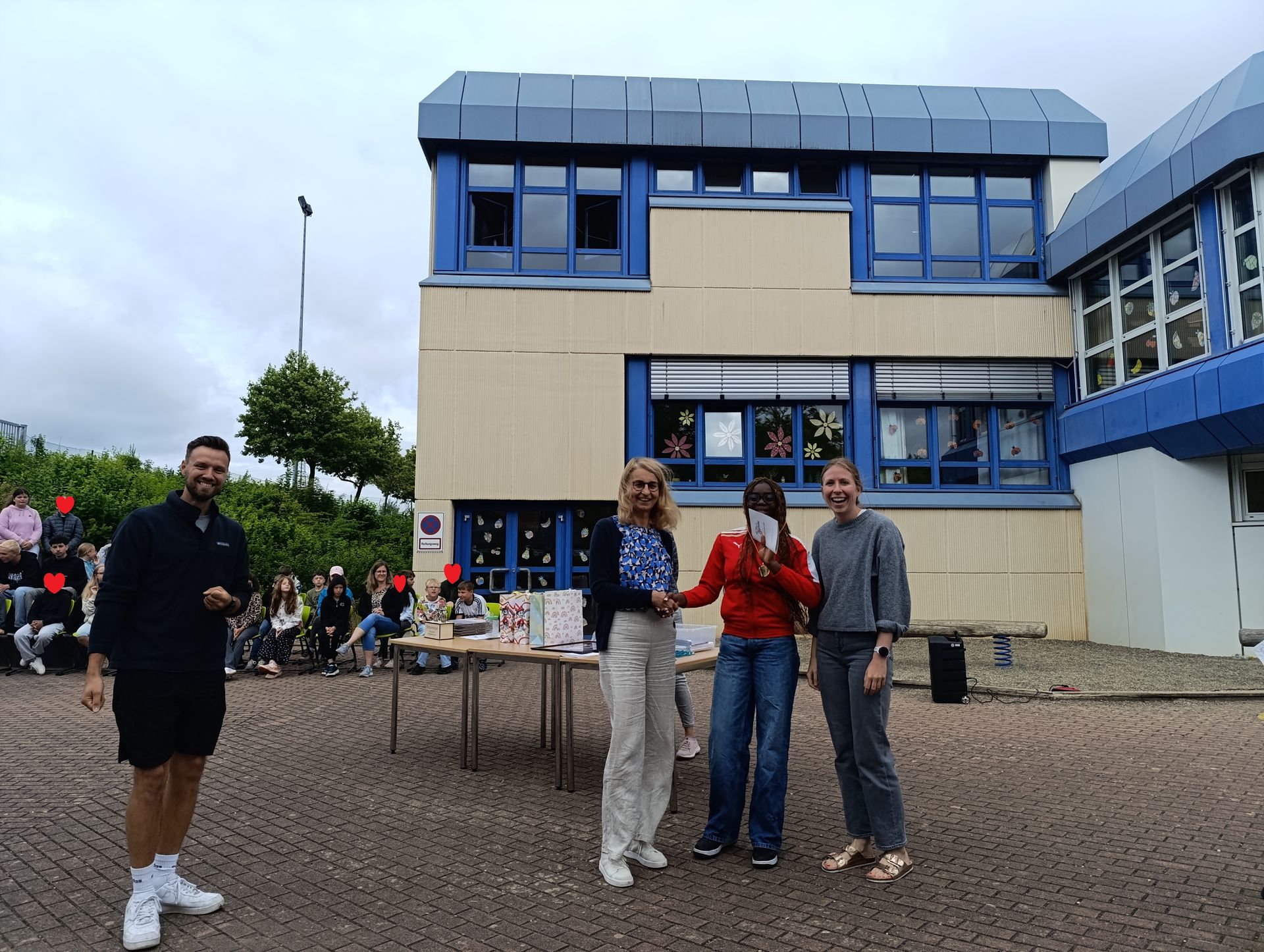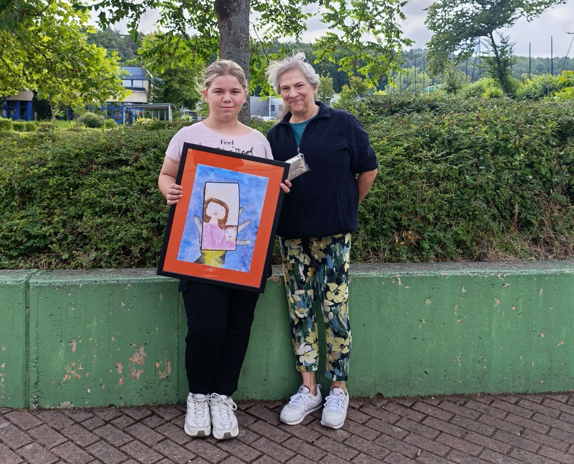 Im Anschluss wurden die Gewinner des Malwettbewerbs ausgezeichnet. Organisiert wurde der Wettbewerb von Frau Ries und Frau Dell-Missier. Das diesjährige Thema lautete „Echt digital“, und es wurden vielfältige kreative Bilder eingereicht. Die Jury der Schule wählte die besten Werke aus, und alle Teilnehmer erhielten ein kleines Präsent. Die zwei besten Bilder der Schule wurden besonders geehrt und durften sich ebenfalls über eine Überraschung freuen.