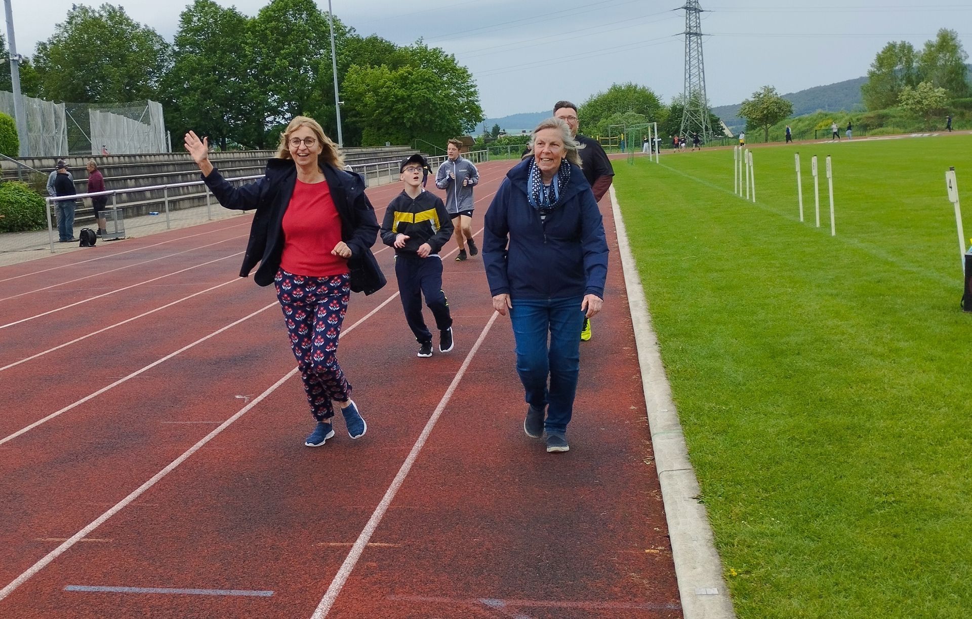 Bemerkenswert war der große Einsatz der vielen Schüler. Kaum einer gab sich mit einer Runde zufrieden. Fast jeder wollte mehrere Runden laufen. Ein bestimmtes Tempo war ja nicht vorgegeben. Zwischendurch konnten die Schüler auch einmal ein Stück im Schritttempo laufen und sich ein bisschen erholen, ehe sie wieder etwa im Zielbereich, vom Beifall der Mitschüler angefeuert, einen Sprint hinlegten, um dann wieder mit einer langsameren Gangart die nächste Runde anzugehen.