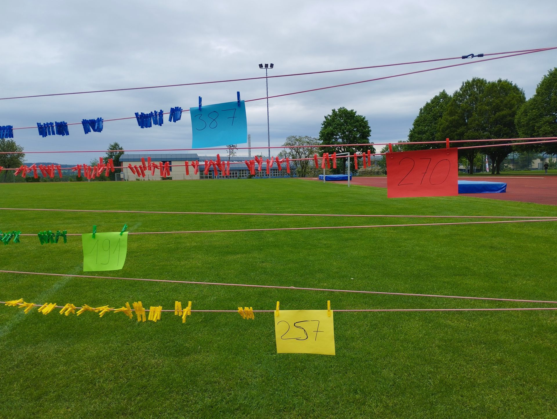 Die Sponsoren hatten im Übrigen die Möglichkeit entweder pro gelaufener Runde einen bestimmten Betrag zu entrichten oder gleich vorab einen festen Betrag zu spenden. Um die Regularien möglichst einfach zu gestalten, mussten die Schüler nach einer absolvierten Runde eine Wäscheklammer aus einer Schüssel entnehmen und diese gleich anschließend in einen Eimer werfen. Diese gesammelten Klammern entsprachen dann der Anzahl der gelaufenen Runden.
