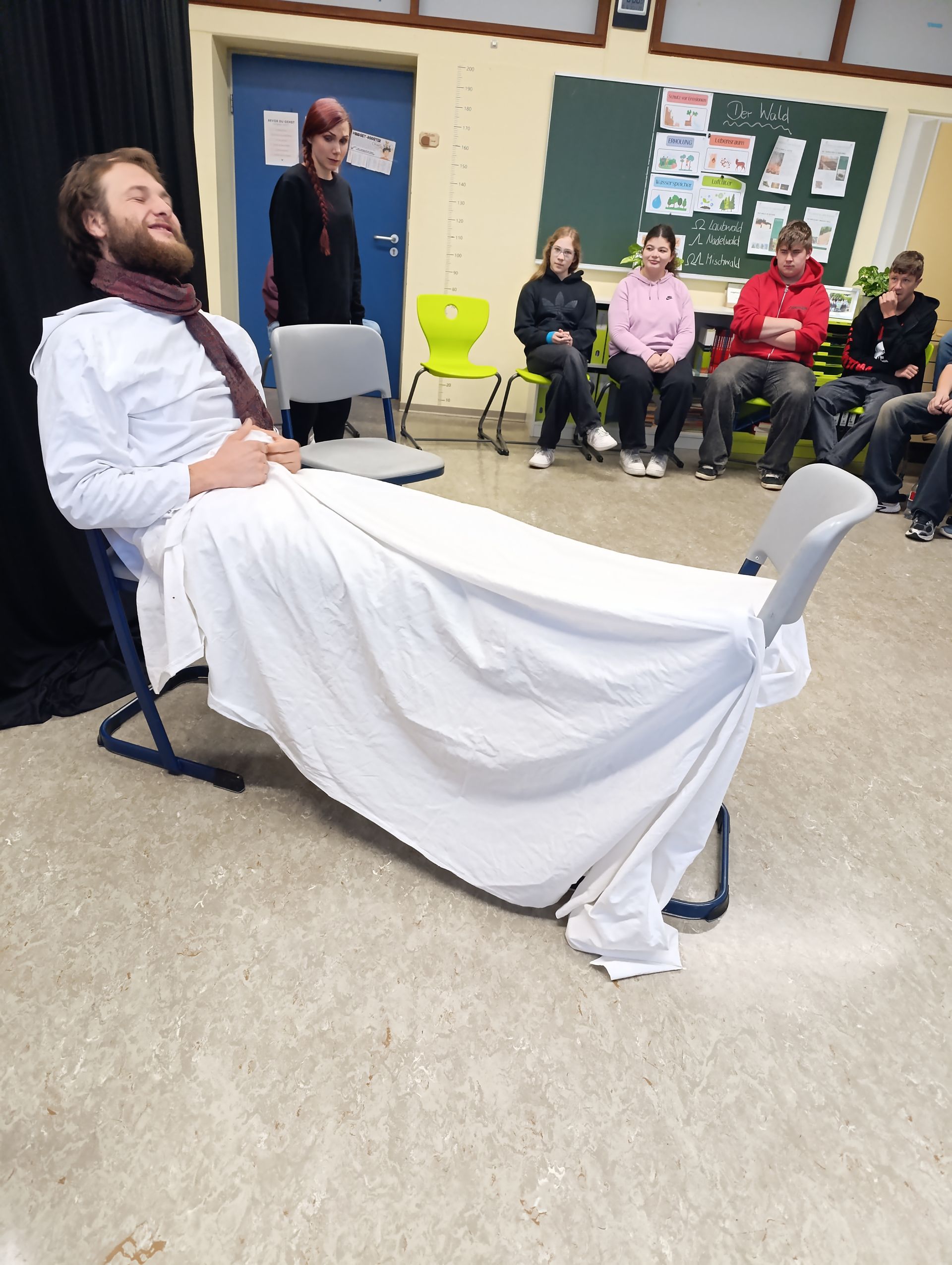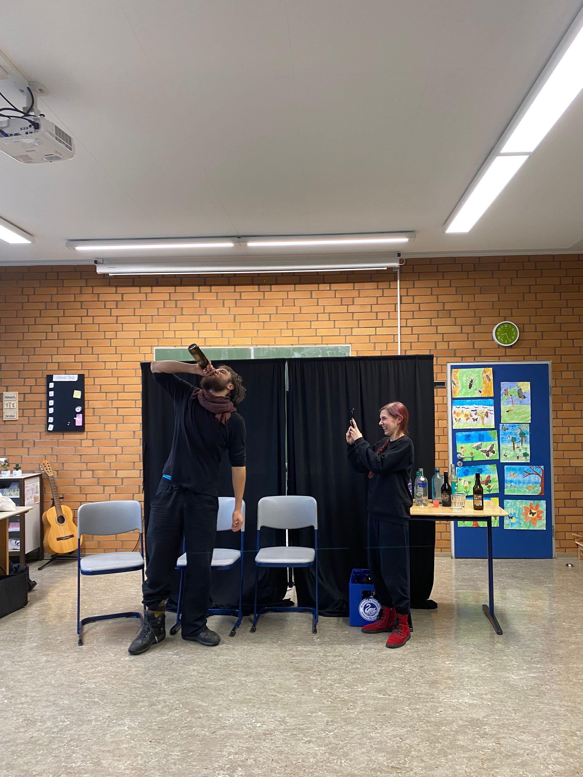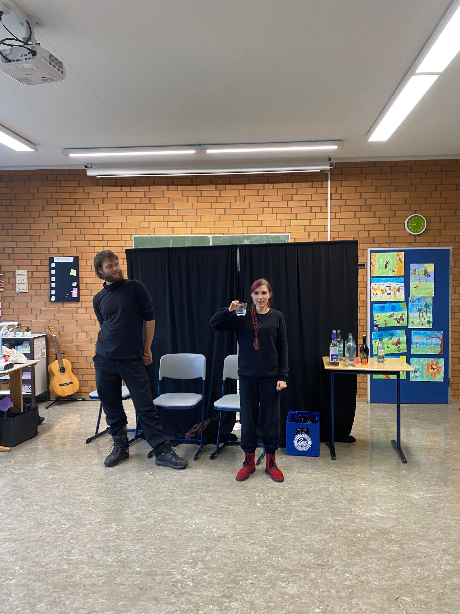 Wir fanden das Theaterstück sehr spannend und die Darstellerinnen und Darsteller waren hervorragend. Es zeigte uns deutlich, dass übermäßiger Alkoholkonsum gefährlich ist und man sich nicht von anderen zum Trinken überreden lassen sollte. Im betrunkenen Zustand kann man oft nicht mehr einschätzen, was man tut, und ärgert sich später darüber.