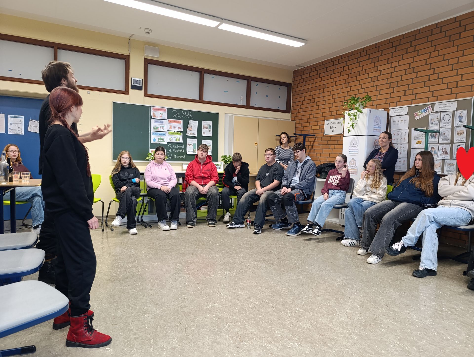 Am Donnerstag, den 16. Oktober 2025, besuchte das Theater Chapeau Claque mit dem Stück „Limit“ die Klassen L8 und L9 der St. Katharina-Schule.