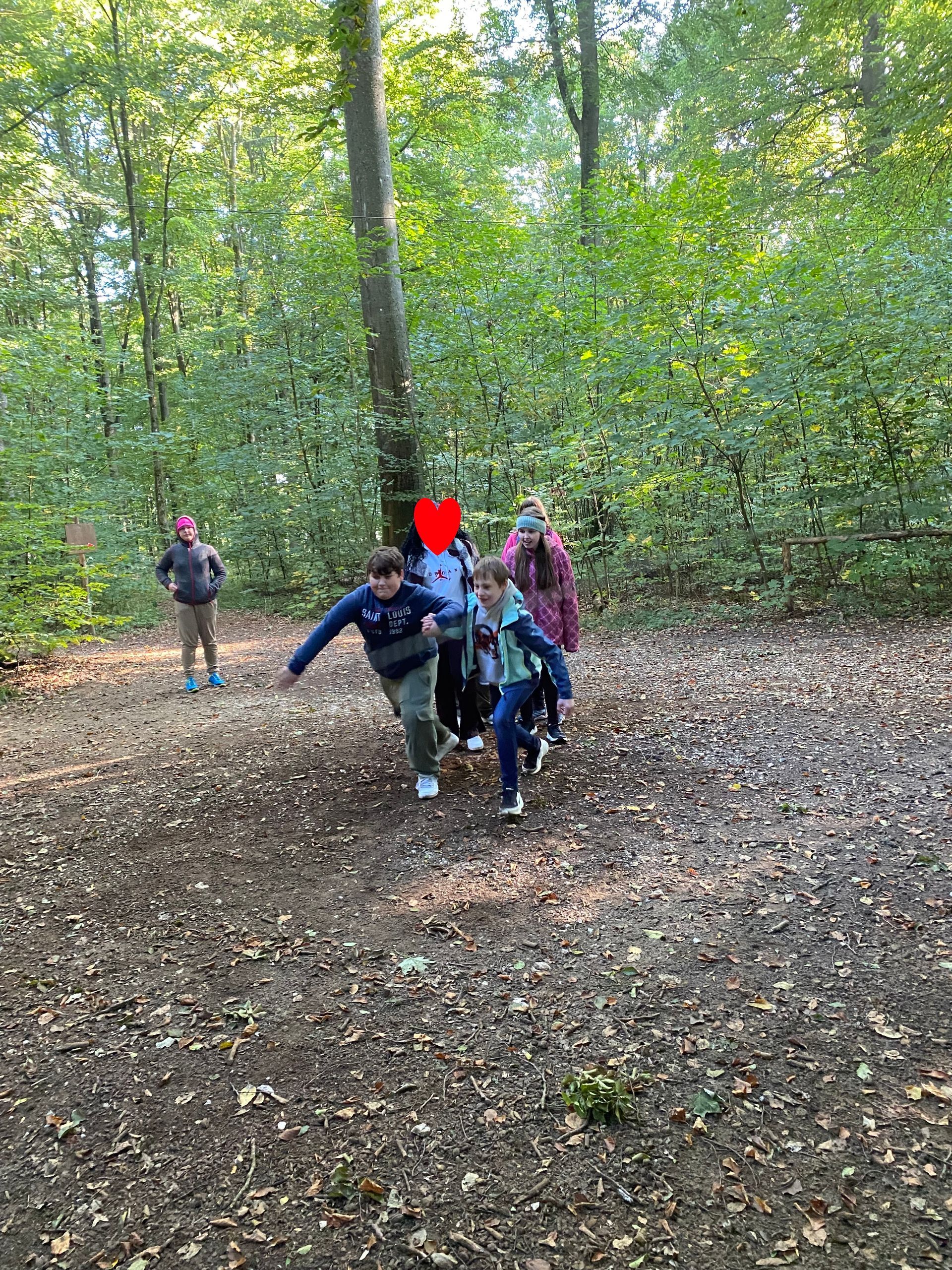 Wir fuhren mit dem Zug nach Bad Staffelstein und setzten die Fahrt mit dem Taxi zum Klettergarten fort. Vor Ort starteten wir mit spannenden Gemeinschaftsspielen, die uns gut auf den Tag einstimmten. Ein Betreuer schwang ein Seil und wir mussten zuerst alleine, dann zu zweit und schließlich zusammen durchrennen – ohne das Seil zu berühren. Das brachte uns alle zum Lachen und machte riesig Spaß.